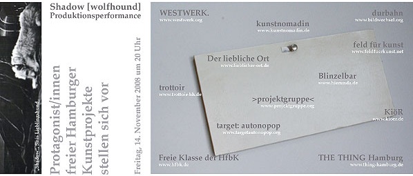 Der Verschiebebahnhof des Modellwesens ist die Grundfigur der Installation: Modelle dienen der Vereinfachung und ersten Annäherung an einen Sachverhalt, sie dienen aber auch der Banalisierung oder klammheimlichen Entfernung von Sachverhalten, um dahinterliegende Bedürfnisse zu verschleiern und in belanglosen „Hochglanzbegrifflichkeiten“ nicht zu fassende Wünsche und Utopien mit ästhetischen Mitteln zu diskreditieren. Dem tritt die Arbeit hinten, dahinter entgegen. Schon diese Einladungskarte lässt erahnen, dass hier keine Frontalpräsentation zu erwarten ist. Die kleinen Europaletten zum Abreißen werden zur Teilnahme an den Gedankenspielen vor Ort gebraucht. Alle um die Zukunft der Quartiersentwicklungen Besorgten sind herzlich eingeladen, auf zwei horizontal als Spielflächen in den Raum gespannten Segeln mitzuwirken. Künstlerinfos: http://www.ulrich-mattes.de