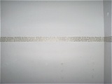 Die beiden zentralen, über Eck stehenden Wände der Blinzelbar sind ganz mit Packpapierbahnen verkleidet. Darauf ist mit Kohle und Kreide in klaren, scharf konturierten Linien gezeichnet und überdimensional groß dargestellt der Blick, hinein in den Kassenbereich eines großen Warenhauses zu sehen. Es ist der Ort, an dem der Kunde, nachdem er an den letzten Warenregalen und an den letzten Auslagen vorbei gegangen ist, sich zu den Kassen begibt. Um was für ein Warenhaus es sich hier handelt bleibt offen, doch befindet sich der Markt gerade im Umbruch. Leere oder nur spärlich gefüllte Kartons, chaotisch herumstehende Warenpaletten weisen darauf hin, daß entweder die Regale neu bestückt werden oder der Markt vielleicht kurz vor dem Ausverkauf steht. Da der ganze Raum in einer bedrohlichen Schräglage dargestellt ist, sowohl die Raumkanten der Architektur aber auch die Regale und Kartons deutlich verbogen gezeichnet sind und so zu kippen drohen, gleitet der Blick des Betrachters unaufhaltsam in die Tiefe ab, zu den Kassen nach draußen. Ist der Warenhandel in die Knie gegangen oder wird hier die Angst des Konsumenten sichtbar, der, mangels Geldes Verzicht üben und immer und immer wieder an den Auslagen und Angeboten vorbeieilen, zur Kassen gehen muß. Abgelenkt oder gestört, wird der Blick des Betrachters dabei durch aufgeklebte, collagierte oder gemalte Farbfelder, die, einer Lupe ähnlich, die entsprechenden Stellen im Bilde kräftig vergrößern und zusätzlich heftig kippen oder verdrehen. Ein Zeit und Realitätsbruch ist hereingebrochen. Das Hier und Jetzt mischt sich mit Gedanken und Erinnerungsfetzen.