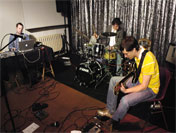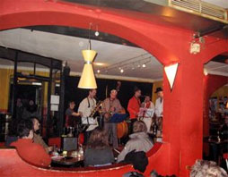 Joel Grip: Originally from Stockholm, Sweden, Joel Grip is a world traveler conversing, via his instrument, with musicians and artists from a wide palette of backgrounds. His massive bass sound, inspired by the growl of earth, has been heard in many cities of Europe as a soloist as well as in various settings/groups ."Joel Grip bowed his bass in aching fashion and Sofia Jernberg let notes pop and blurt from her throat as though coughing fit of tone. This was and is the truth of music."John Hughes: is an active member of the jazz and improvisation community in Hamburg, performing regularly both in Hamburg and in Germany. John has worked with numerous groups and projects, dancers, poets, artists and light technicians. In Nov. 2004, John curated the first, annual "Phenomorphonic" festival in the Christianskirche, Hamburg. This festival for experimental acoustic and electronic music brought together musicians from New York, Berlin, Switzerland, Italy, and Hamburg. Johns' current associations include the electro/accoustic trio Hughes/Scherzberg/Wiese and his duo collaborations with Italian pianist Alberto Braida and German saxophonist Lars Scherzberg. John also plays in "Rocket No.9", a jazz group which focuses on presenting the music of Sun Ra. Heiner Metzger . Chad Popple: also plays in "Rocket No.9", has recorded and toured extensively in USA and Europe with the groups Colossamite, Gorge Trio, and Iceburn Collective. Chad studied percussion at the Wisconsin Conservatory of Music (‚90-92), Berklee College of Music (‚92-93), and graduated from University of MN (‚98) with a degree in Ethnomusicology after studying tabla drumming in India (‚95-96) with Ustad Monsour Ali Qadri. |