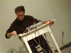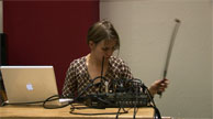 Heiner Metzger :Gabel, Messer, Löffel, Stift , Bürste und Tisch sind Klanggeber beim soundtable von Heiner Metzger. Selbst die zarteste Berührung des Tisches oder der daran angebrachten Bestecke wird durch elektronische Verstärkung hörbar. Mit dem soundtable generiert er Klänge von stofflicher Präsenz und Abstraktion.
