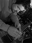Hermann Müntzing / Born in Stockholm, Sweden 1964. In the late eighties, after graduation from Royal Academy of Music, I had some years playing electric bass in several bands, all into rather straight jazz/rock. My first encounter with free improvised music, the Swedish trio GUSH, made a huge impact on me, I was stunned! After experimenting a lot on my bass with different kinds of preparation, I soon felt a need for a new instrument that allowed me to produce the kind of sounds that I was looking for. That made me create the flexichord; a 12-stringed electric guitarlike instrument. .