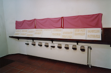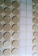 Eine Installation mit 500 geweihten Hostien auf 9 quadratischen Flächen angeordnet in einem Schaukasten im Turmraumes der Kirche. Unter dem Schaukasten hingen 9 Vogeltränken, mit Wasser gefüllt.